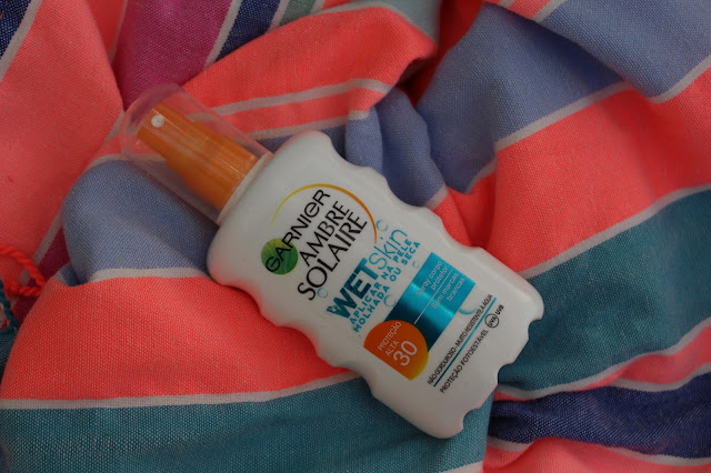 O meu primeiro essencial é, sem dúvida, o protetor solar. Eu costumava usar o Gold da Garbier mas essa gama foi (infelizmente) descontinuada. Agora estou a usar este Wet Skin que dá para usar na pele seca mas também na pele molhada e seca super depressa! Geralmente uso sempre protetores da Garnier e até agora gostei de todos.